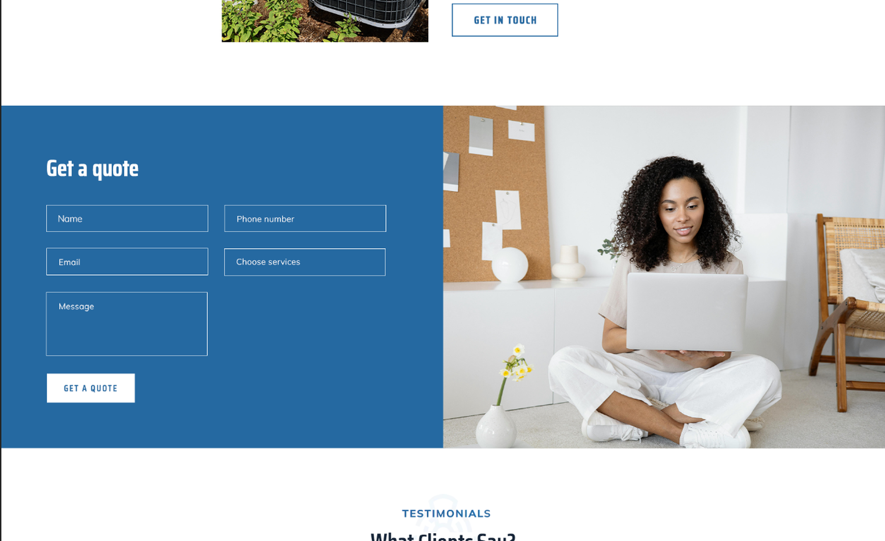 The original website placed its contact form within a crowded layout. The redesign simplifies the form and places it within a clean section that encourages visitors to request a quote.
