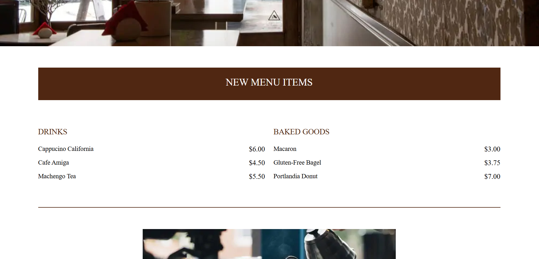 The brief outlined the structure of the page, including navigation, featured sections, menu items, and footer content. Without a visual reference, I interpreted these requirements and translated them into a clean, organized layout.