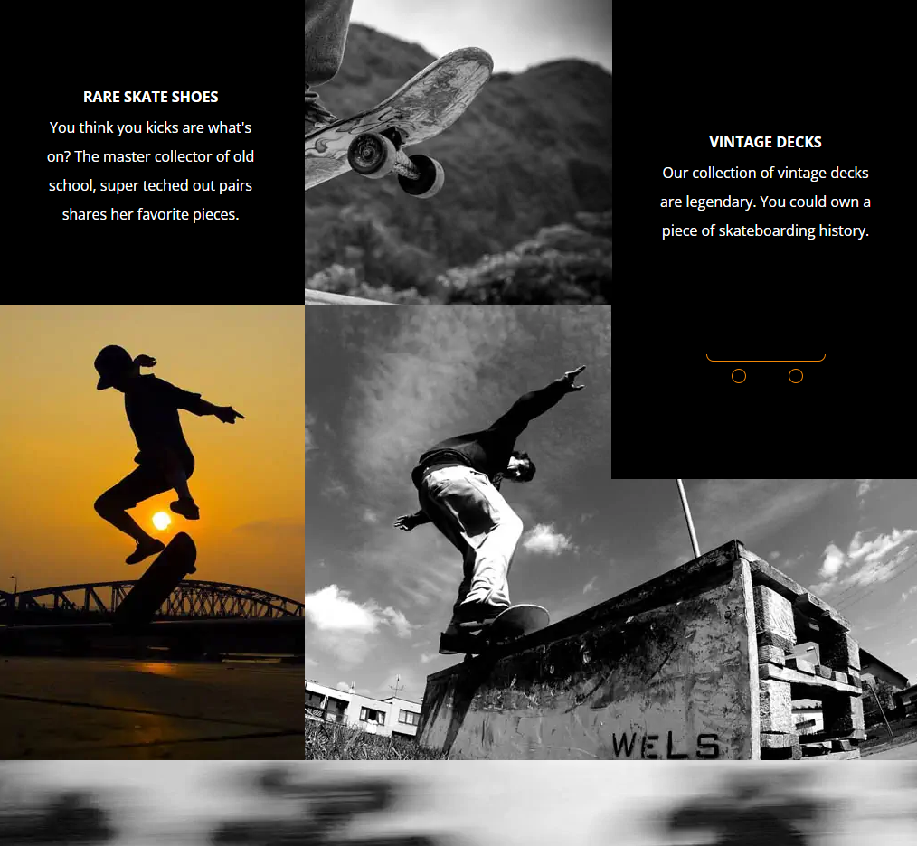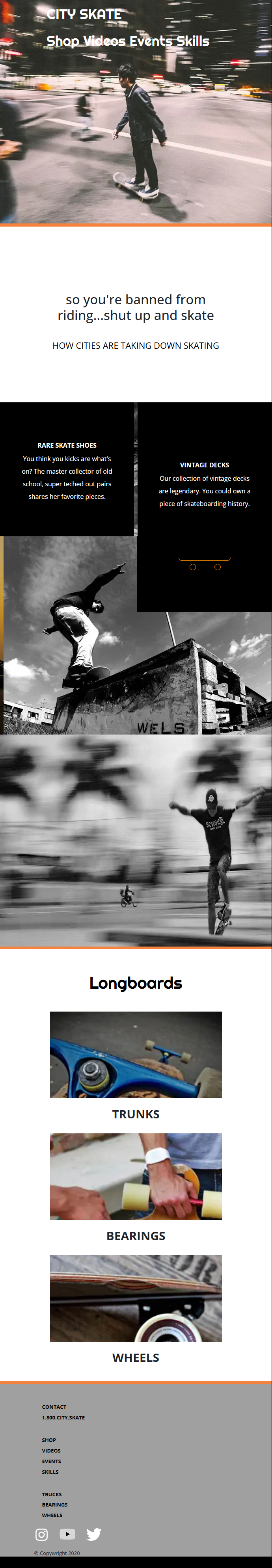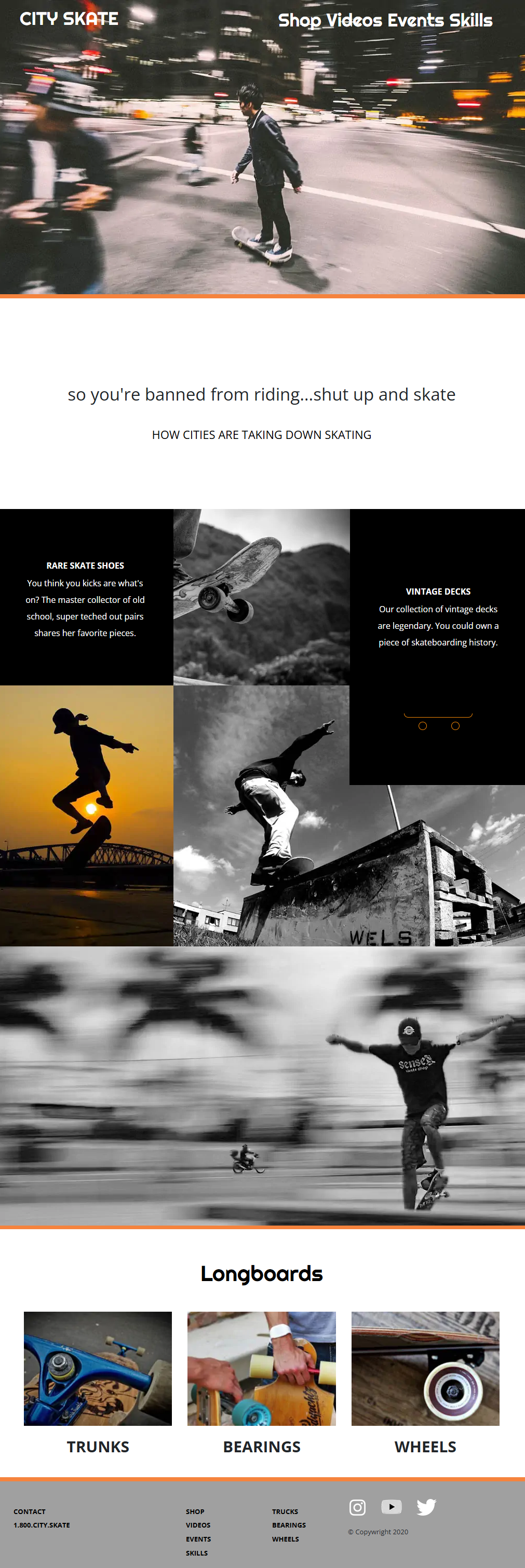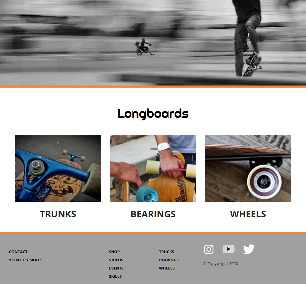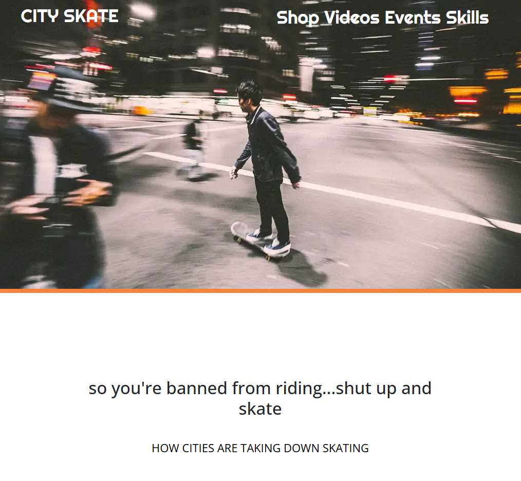 City Skate is a front-end development project built with HTML and CSS, focused on creating a visually dynamic layout through image layering, positioning, and responsive design techniques.